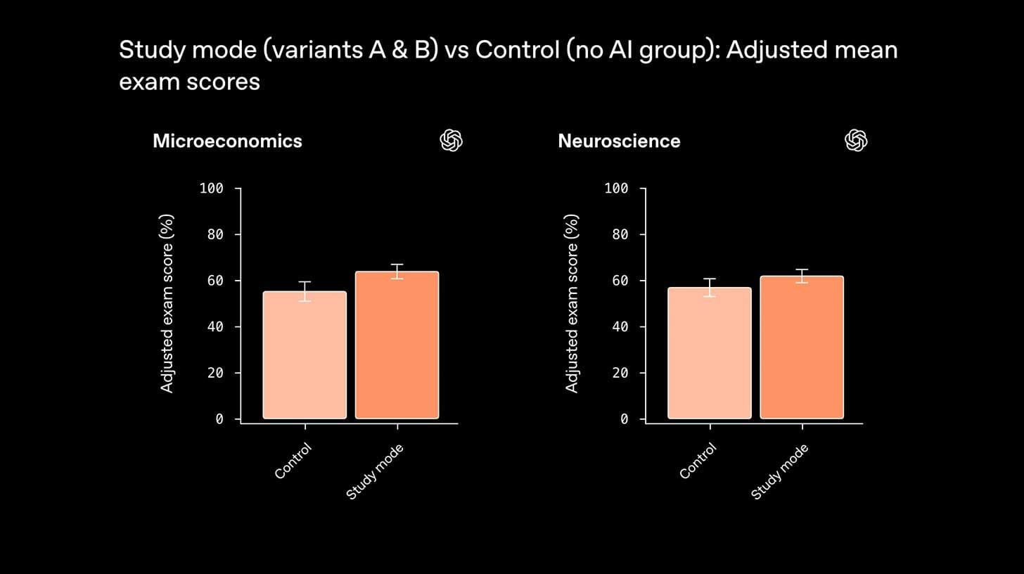 A 300+ student trial found microeconomics students scored 15% higher with ChatGPT’s study mode, though other subjects weren’t statistically significant.